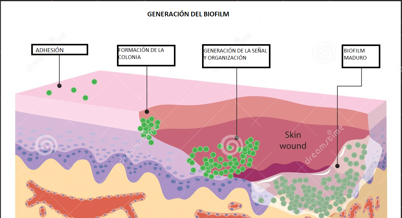 Existen evidencias de que el 60%- 100% de las heridas crónicas presentan biofilm, al menos en alguna zona del lecho, en comparación con el solo 6% en las agudas.