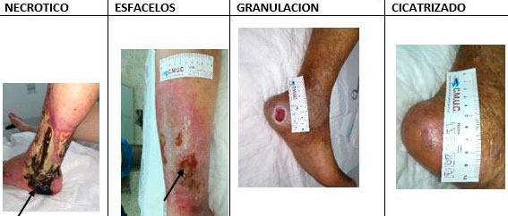 El aspecto del lecho ulceral nos indica como progresa la herida y si el tratamiento es eficaz. Para una cicatrización óptima, el tejido necrótico y los esfacelos deben ser eliminados. Si hay tejido de granulación lo protegeremos con curas húmedas.