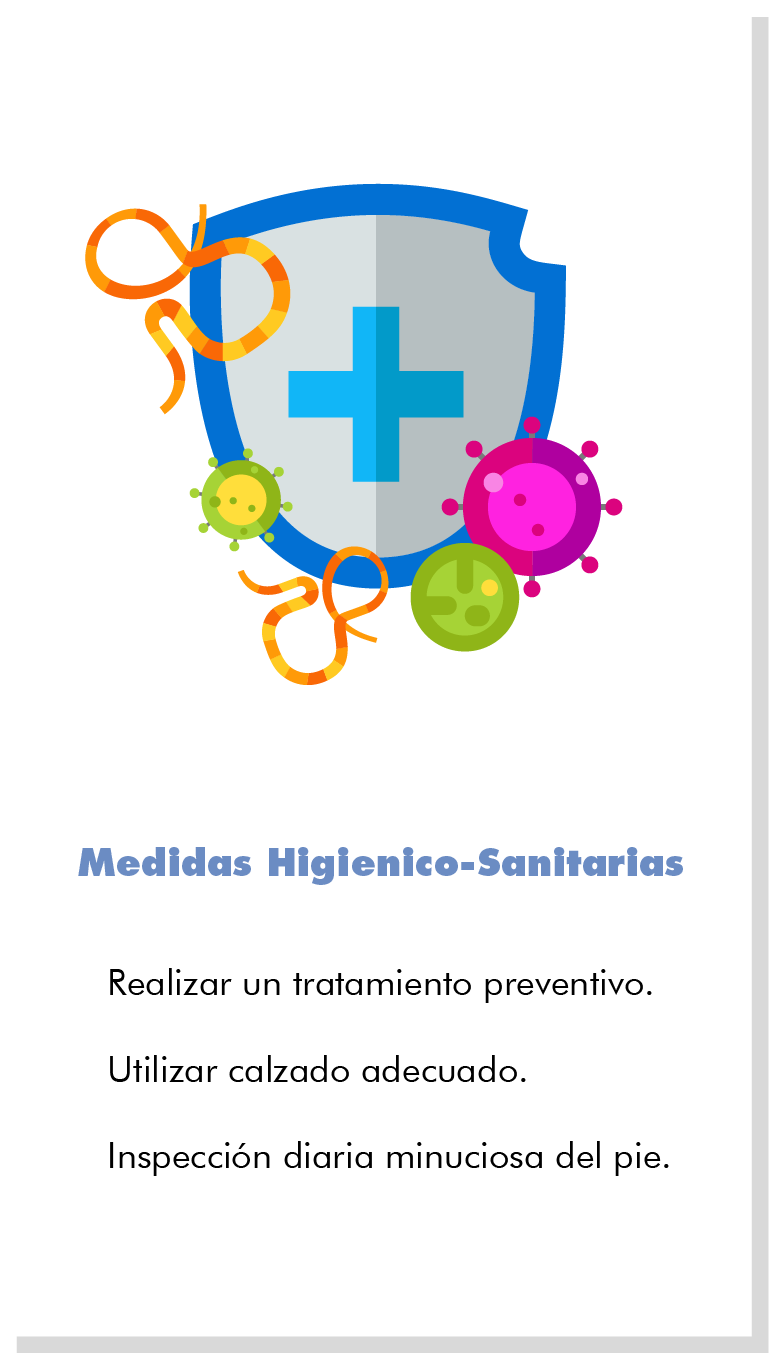 Evitar cualquier traumatismo llevando zapato adecuado que el profesional paute. No caminar nunca descalzo. Evitar fuentes de calor cerca de los pies (mantas eléctricas, estufas, radiador,…).